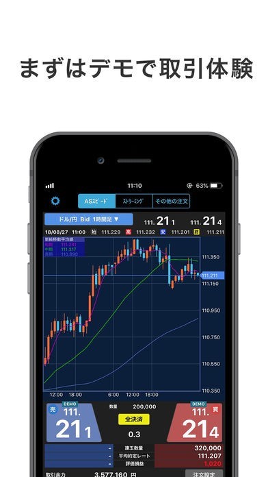デモ取引が用意されているので、FX初心者の方が手軽にFX取引を体験して、本番前に練習することができます。デモ取引で使っていた設定をそのまま本番に適用することもできます。