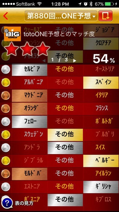 ・買ったBIGが、totoの予想投票率や達人予想にどのくらい近いかが星の数でわかります。