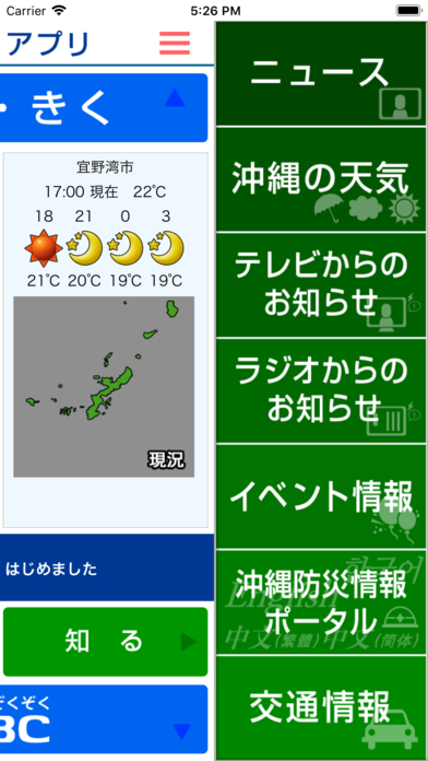 カテゴリー別に沖縄のニュースや気象情報が表示出来る