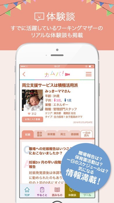 カムバ! 妊娠〜出産〜職場復帰まで応援アプリの特徴・編集部レビュー