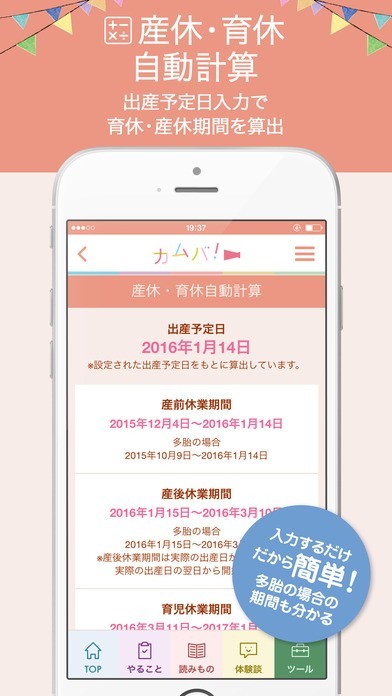 カムバ! 妊娠〜出産〜職場復帰まで応援アプリのスクリーンショット