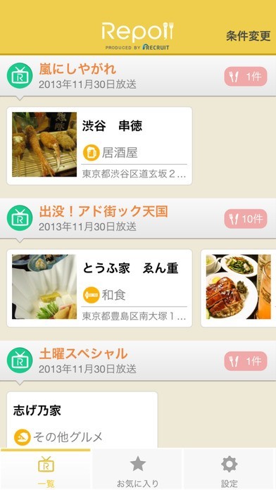 「テレビで取材された飲食店が満載 Repo!/レポ」関連アプリ