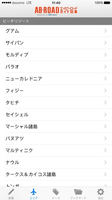 お気に入りの記事はブックマーク機能に登録!エリア別の記事表示機能で旅行予定の国をチェック!