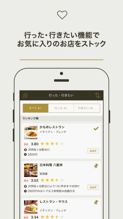 地図を表示して地図内にある店から行きたい店を選択できる