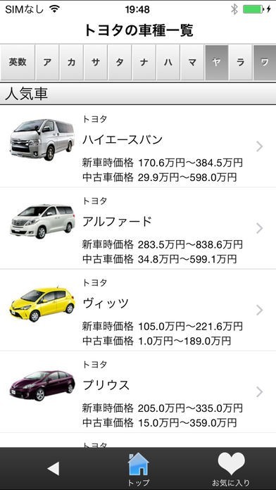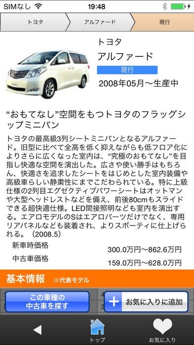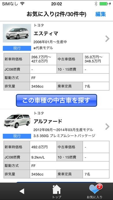 気になった情報をお気にいりに登録しておくことで、登録しておいた情報をまとめて比較することが可能となっているので、どの車種を購入するかを比較検討しやすくなっています。