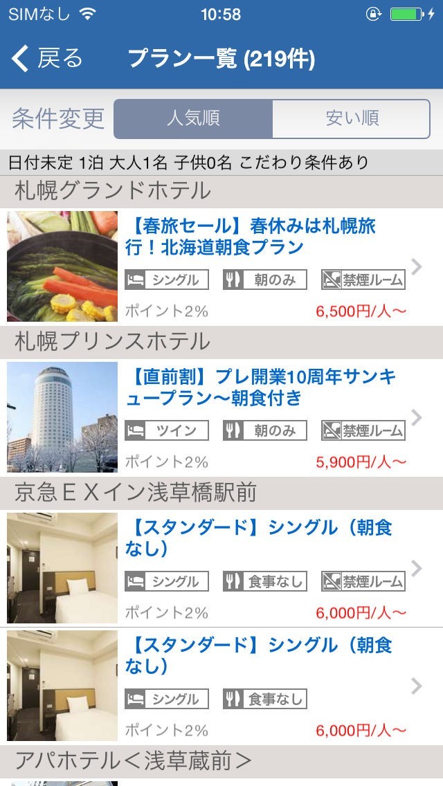 2万件以上のホテルを網羅!エリアや駅名から素早くホテルを探していける旅行アプリ