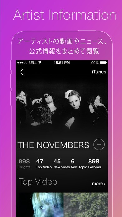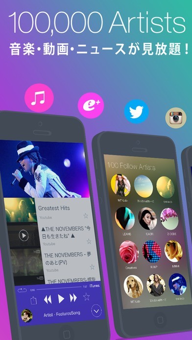 お気に入りのアーティストの情報を随時取得!音楽も動画もすべて見られる
