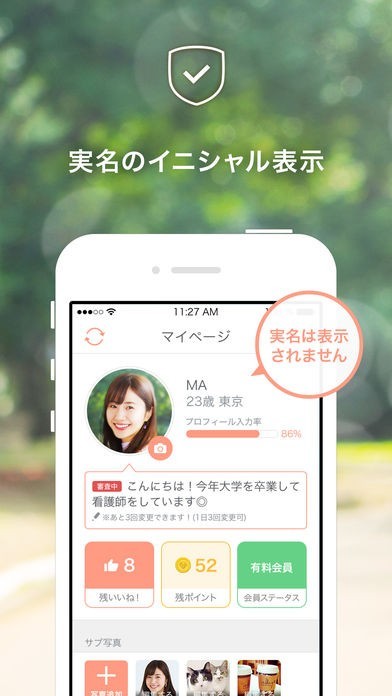 実名ではなくイニシャルで利用できるため、周りにバレたくない場合にも安心
