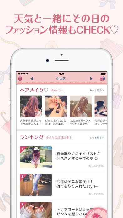 市町村単位で天気予報が見れるので、予報は正確です。コーディネートもなかなかお洒落で、参考になるコーデが多め。