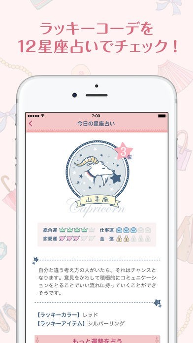 市区町村、ピンポイントの地域のお天気が分かり、そのお天気や湿度、気温などに合わせた洋服のコーディネートを提案してくれるのでおしゃれに敏感な女子にピッタリのお天気アプリです。雨の日のスタイルも提案してくれます。天候にあっていなかったので洋服を汚してしまった、暑かった、寒かったなどのストレスを解消することができます!12星座の占いアプリも無料です。