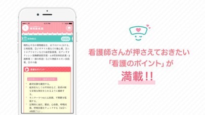 循環器疾患の分野の介護について学ぶことができるアプリです。看護師や看護師を目指す学生の役に立ちます。イラストや写真を交えて分かりやすく解説されているので、複雑な循環器でも視覚的に理解できます。 索引や検索機能があるので知りたい時にすぐに目当ての情報を探し出せます。項目ごとに「重要」や「調べる」など4種類のスタンプを押すことができるので、復習も効率的に行えます。文字は3段階に調整できるのでスマホでも見やすく表示できます。