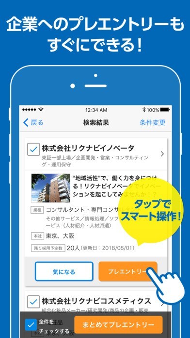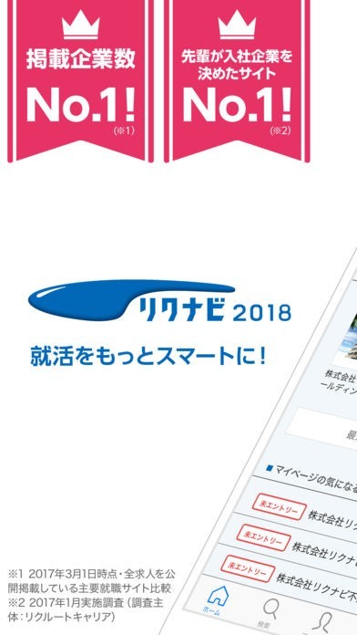 リクナビ2018 新卒向け就活アプリ(企業検索/説明会予約/自己分析/エントリーシート/面接対策)のスクリーンショット