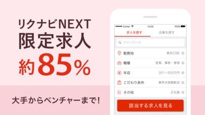 スマートフォンで大手から優良企業まで業界最大数の求人掲載、転職情報サイト「リクナビNEXT」の会員登録無料のアプリ!