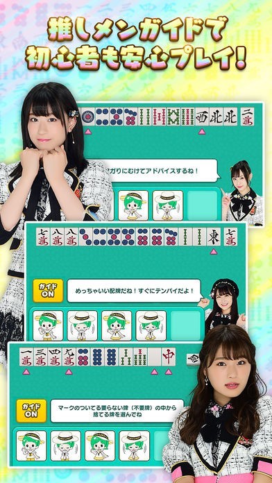 自分の好きなNMB48メンバー「推しメン」が麻雀のルールを教えてくれる推しメンガイドが搭載されているので、麻雀初心者でもメンバーと一緒にルールを覚えることができて安心です。