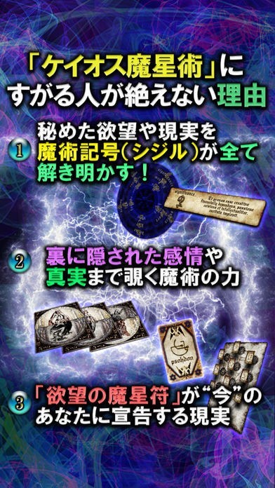 ケイオス魔術占いは、性格占いや相性占いで自分自身のことを理解していきます。出生記録から、魔術印章シジルを使った本格的な占いを楽しめます。魅惑的な占いにドキドキします。