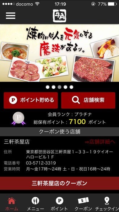 期間限定クーポンや、牛角の店舗に通うと貯まるプレミアムクーポンが手に入る!