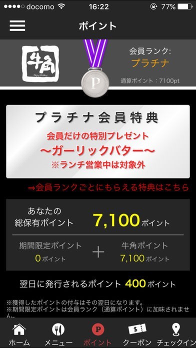 店舗によく行くとポイントが貯まるので、牛角ユーザーは貯まりやすい!