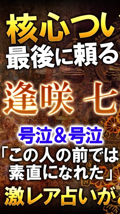 App Storeより引用核心ついて40年。人生も恋愛も当てる関西No.1と口コミの占い師をご存じですか。その名は逢咲七穂【最後に頼るならこの人】と上方の芸能人の間で噂続出。