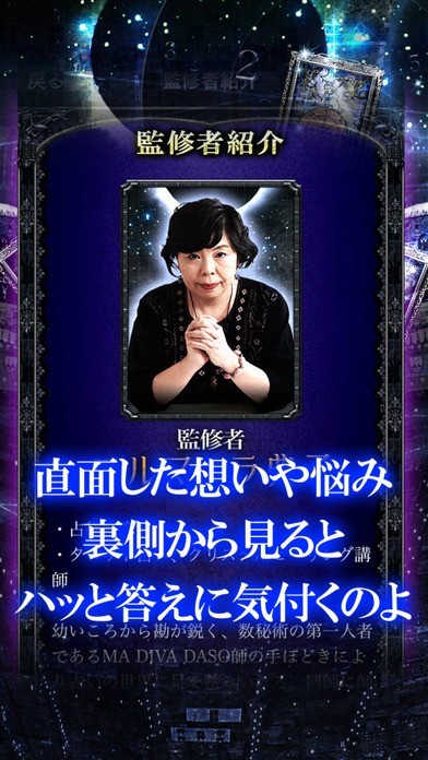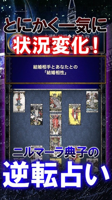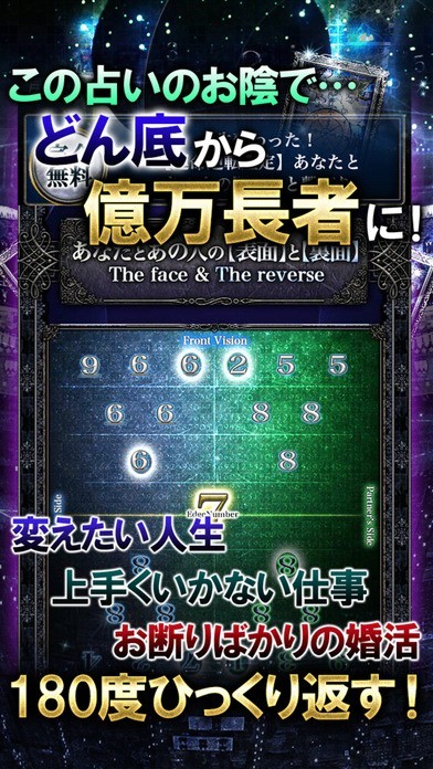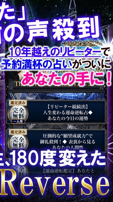 App Storeより引用本当のこと……知りたくないですか?御礼殺到5.5万人。裏を見抜き人生を180度覆す噂の占い「The reverse」。ニルマーラ典子のスゴ技占いをご体験ください。