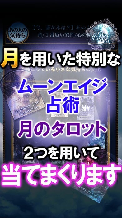 App Storeより引用TVヒルナンデスで「とにかく予約が取れない占い師」として紹介。渋谷・上野の占い館で予約数1位、人気1位を獲得し続ける、今予約が取れない占い師1位「村上ソラル」の公式アプリです。とにかく気持ちが当たる。片想いが成就すると絶賛される殿堂入りの「ムーンエイジ占術」その鑑定をあなたのお手元でお楽しみいただけます。