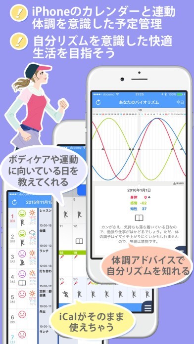 4. 体調にあった過ごし方「運動に向いている」「デスクワークにオススメ」など、カレンダーに表示されるので予定をたてやすい