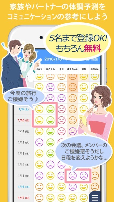 5. 家族や気になるカレやカノジョの体調も毎日チェックできる!