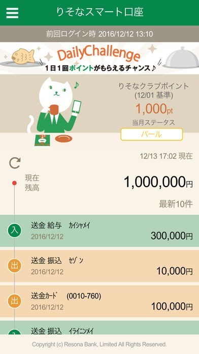 デイリーチャレンジゲームでりそなクラブポイントが増やせる!