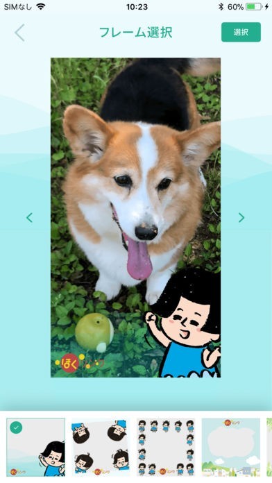 ・お好きなフレームを選択し、「選択」ボタンをタップすると確認画面が表示されます。