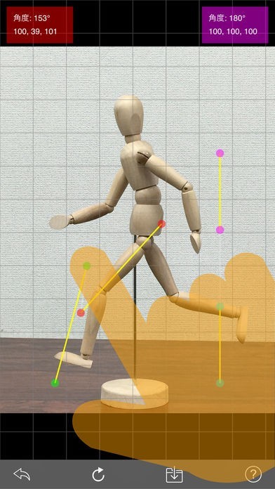 補助線を自由に引くことで任意のもの角度や比率を簡単に計測できます。角度は同時に2つまで計測可能です。補助線は比率計としても使用できるので、建物の縦横比なども簡単に調べられます。