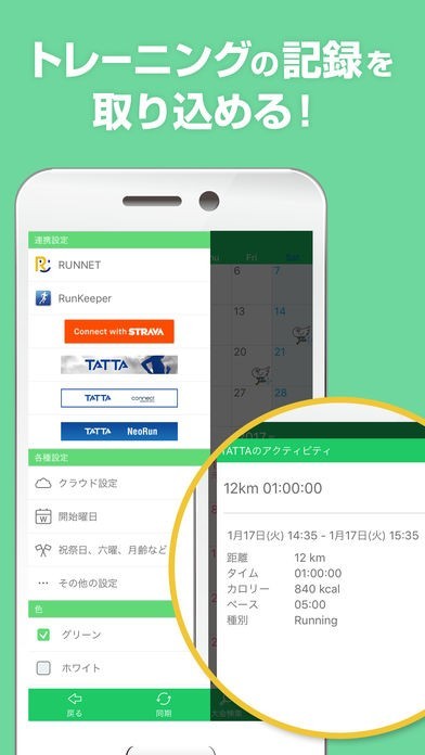 当日までに、どのようにしてカラダを仕上げられるかが重要なので、トレーニングの内容をメモすることもできます。カレンダーに記録して努力を感じることも可能となっております。