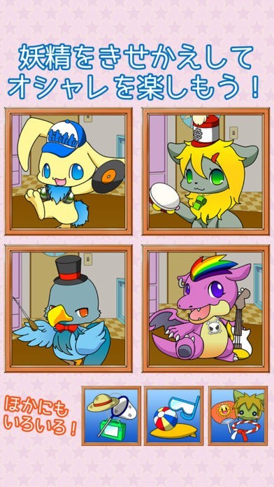 ゲームを始めるときに、音の妖精と呼ばれるキャラクターを1匹選んで、あなたのお供にすることができます。プレイ中は妖精があなたのプレイをアシストします!