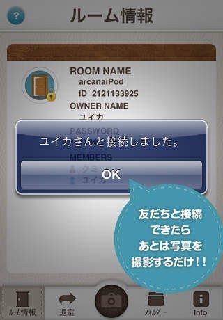 「MyPhoTomo(マイフォトモ)」では、モバイルデータ通信やWIFI通信を利用しなくてもブルートゥースによって直接的に接続して写真を送ったり、受け取ったりすることができます。 よって、地下鉄など通信することが出来ない場面などにも問題なく実行することが出来ます。 やり方は片方の人が部屋を建て、もう片方の人は入るだけです。 また、セキュリティ対策としては、最初に入った人のみしか写真を閲覧できないという制度によって、他の方に見られる心配がなくなったり、パスワードを設定して他の人が見れなくするといったこともできます。