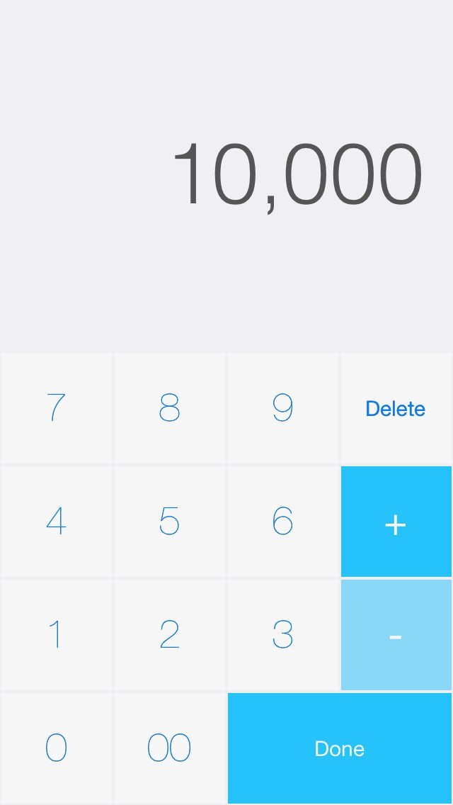 目標金額決めて貯金を始める時に貯金額をすぐに入力できます。電卓画面から入力できるので誰でも簡単にできます。また、目標金額までの残額を表示することもできるのでとても見やすく使用できます。