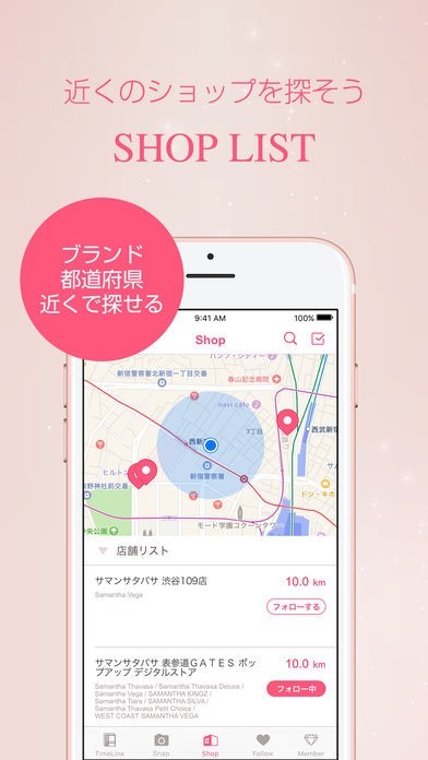 ショップリスト機能が搭載されているので、GPS機能を利用することによって自分の現在地の近くにあるサマンサタバサの実店舗の情報を検索することが可能となっています。