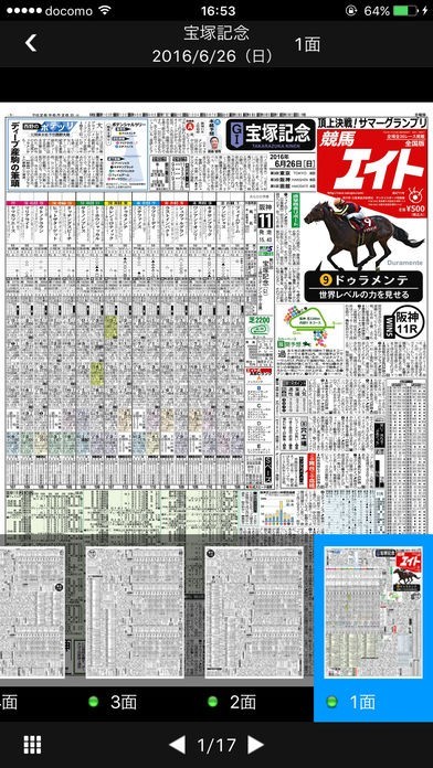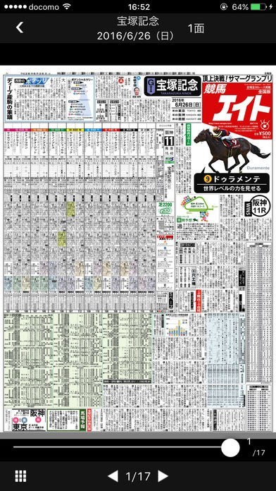 当アプリでは競馬エイトをそのまま再現していますが、電子版の性質上新聞のようにかさばらずサイズも小さく、紙の競馬エイトでは見づらい古い号などを見返しやすい点もメリットです