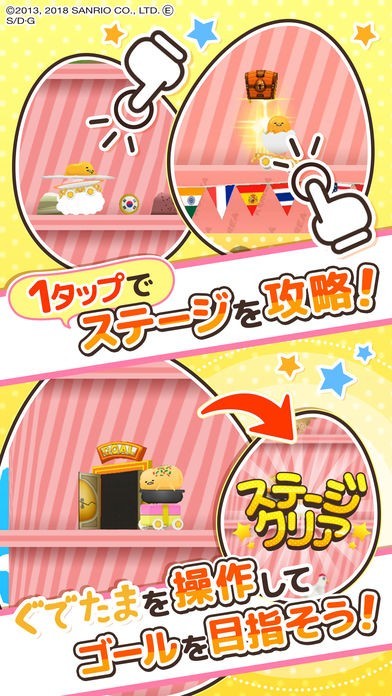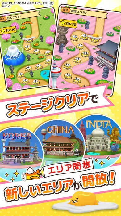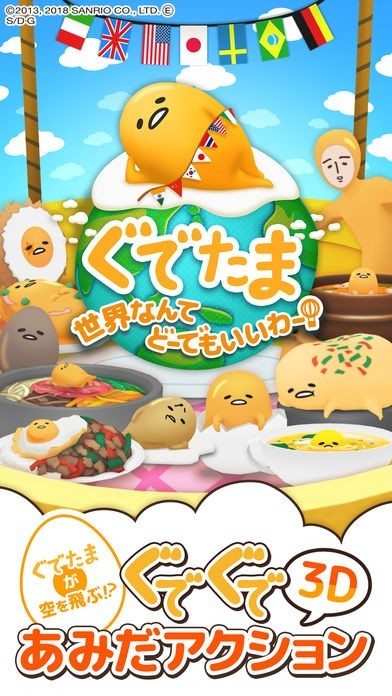 サンリオ1の脱力系?あのぐでたまが3Dに! ぐるぐる回転するステージを、簡単ワンタップアクションで攻略! レシピを求めて世界中を飛び回る!?新感覚【ぐでぐであみだアクション】登場