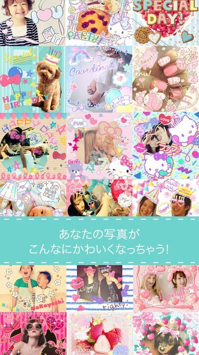 写真をサンリオキャラクターのスタンプや切り抜きでかわいく飾れる