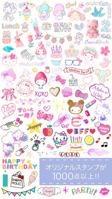 ハローキティをはじめとしたサンリオキャラクターで写真をデコレーションできる