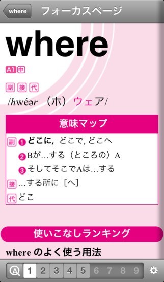 たんなる辞書アプリではありません。英語学習を助けるためのメニューが用意されています。ワンポイントアドバイスやフレーズ解説を読むことができ、まるで教科書のように英語を学べます。