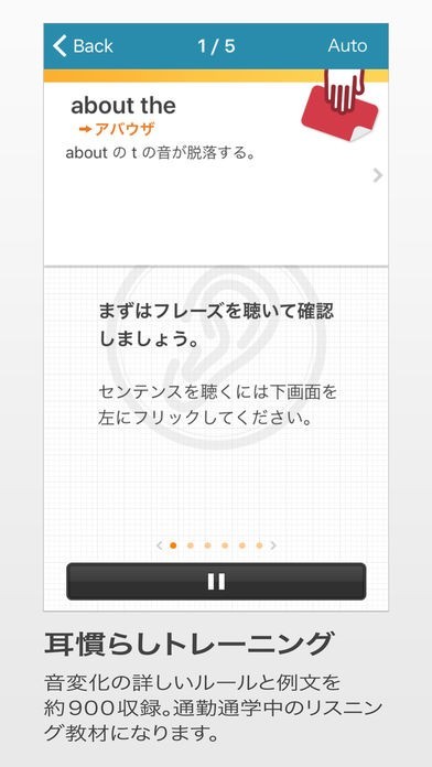 英語初心者は短い単語が続くと、聞き取りにくくなりがちです。アプリは聞き取りが難しくてもフレーズごと覚えられるように工夫されています。英語と日本語の文字による表記もあるので、目と耳両方から覚えることができます。