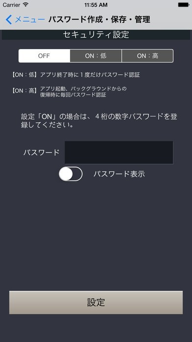 仕事でパスワードを使用するというビジネスマンの方に便利なのがこのアプリです。 1234やabcdのような推測されやすいパスワードを使用していると不正利用の恐れがあります。 そんな時でもパスワード作成機能により、推測され難いものを使用できるようになります。 名前を付けてログインIDとパスワードと一緒に保存しておくと、何のパスワードだったか分からなくなるという心配がありません。 50個まで保存する事が可能、たくさんパスワードを持っているという時でも管理しやすいです。 4桁のパスワードを設定し、アプリにロックをかける事も可能です。 勝手にアプリを利用されるという心配も少なくなっています。