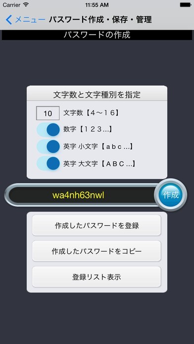 パスワード作成・保存・管理のスクリーンショット