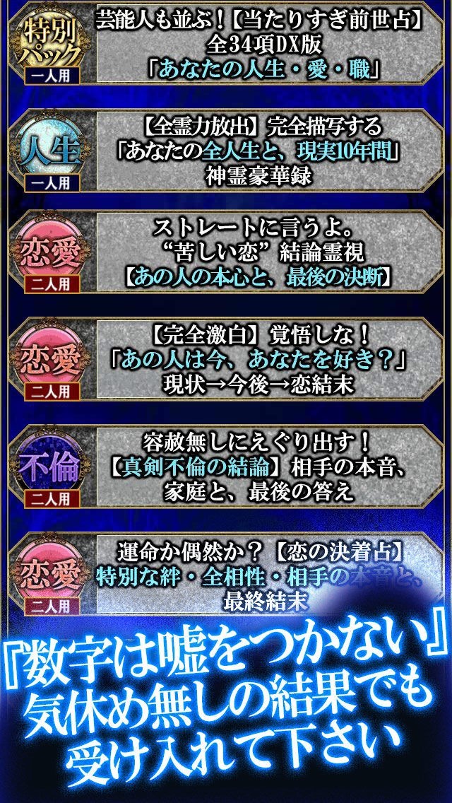 多くの人があつまる東京の渋谷でもっとも結婚できる確率が高いといわれている占いをスマートフォンで簡単に体験することができるアプリが「【神霊前世占】早坂好乃」になります。このアプリはタロットや手相占いを操り、メディアへの出演も果たしている新進気鋭の占い師である早坂好之氏による前世占いを体験することが出来るようになっていて、不倫結論や前世プロフィールなどを無料で利用することができるようになっているほか、有料メニューでは不倫決別占いなどを利用することができます。