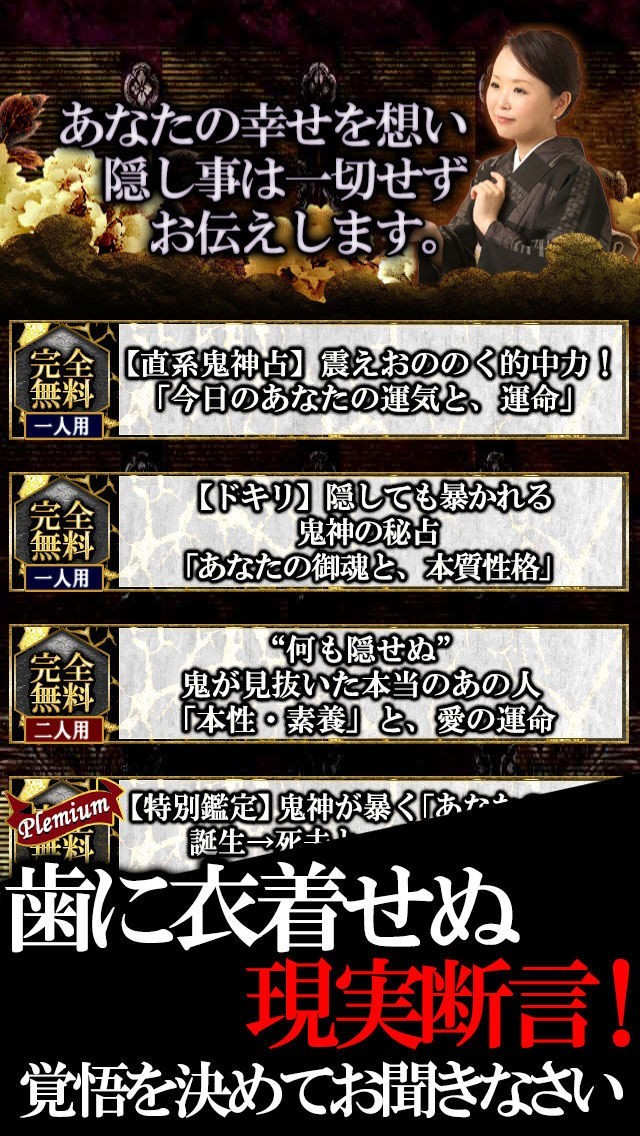 【無料】凄く当たる鬼神様の占い「鬼神秘命抄」星谷礼香のスクリーンショット