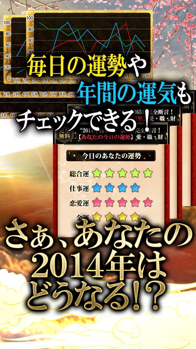 「毎日の運勢」を見ることができて、「総合運」、「仕事運」、「恋愛運」、「金運」を把握できる