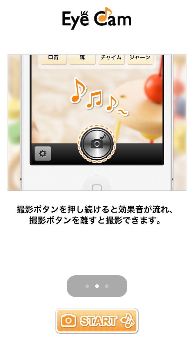 このカメラアプリは、撮影ボタンを押してるあいだ、効果音がながれ、モデルの関心をカメラにひきつけます。
