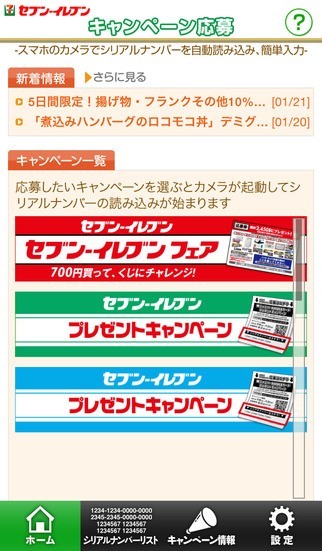セブンイレブンでのキャンペーンのシリアルコードを撮影するだけで入力できる
