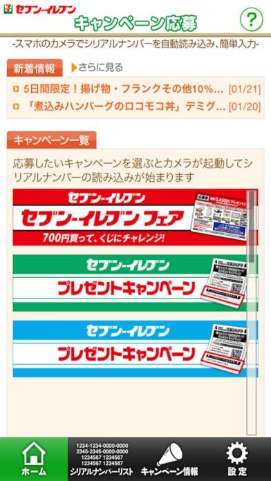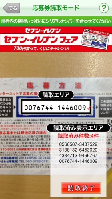 セブンイレブンの簡単入力アプリ~シリアルナンバーを撮影~のスクリーンショット