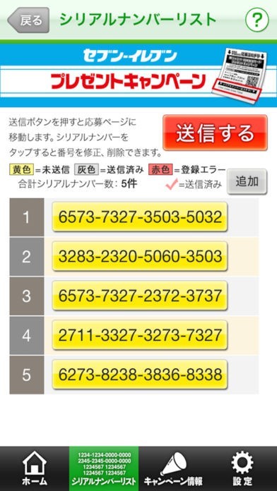 セブンイレブンでのキャンペーンのシリアルコードの送信の確認も簡単