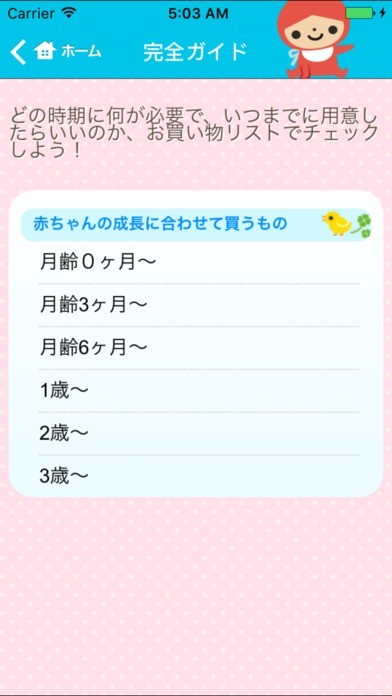 4 育児ガイド・・・月齢(時期)ごとの必需品がチェックできる&購入も